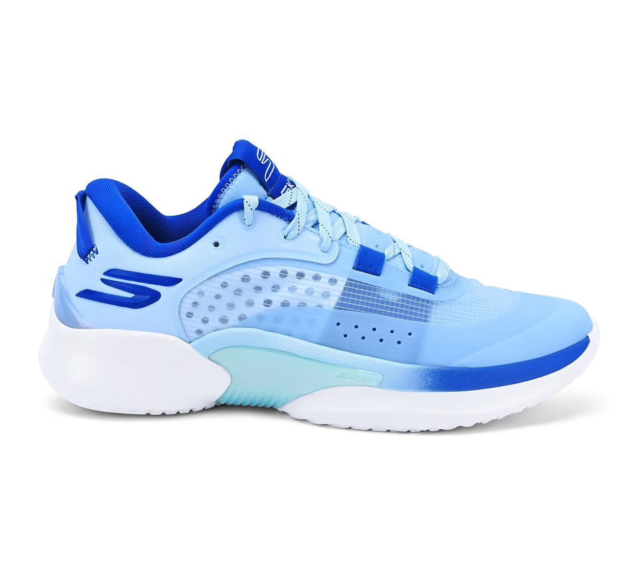 Lightweight performance and premier comfort combine in the Skechers Basketball®: SKX RESAGRIP™ court shoe. Designed for players who move at top speed, these basketball shoes offer exceptional stability and support with enhanced collar foam for ankle control and a Skechers HYPER BURST PRO™ sockliner for increased cushioning and response. Every pair features a durable mesh upper with HYPER BURST® cushioning and Goodyear® Resagrip® technology outsoles designed for indoor traction.